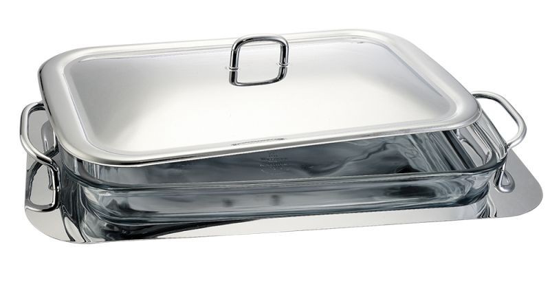 materiál: nerezová ocel / tvrzené žáruvzdorné skloobjem: 3 Lskleněnou nádobu lze použít v pečící troubě, mikrovlnce i mrazákuteplotní odolnost skleněné nádoby: mínus 25 °C až 230 °Cve skleněné nádobě lze péct, následně servírovat za pomoci nerezového tácudíky poklici vydrží jídlo déle teplérozměr...