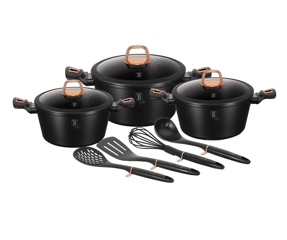 - doménou této sady je 3vrstvý povrch s mramorovým designem charakteristický svou dokonalou nepřilnavostí, žádné potraviny se nepřipalují a díky tomu se kastroly velice snadno čistí