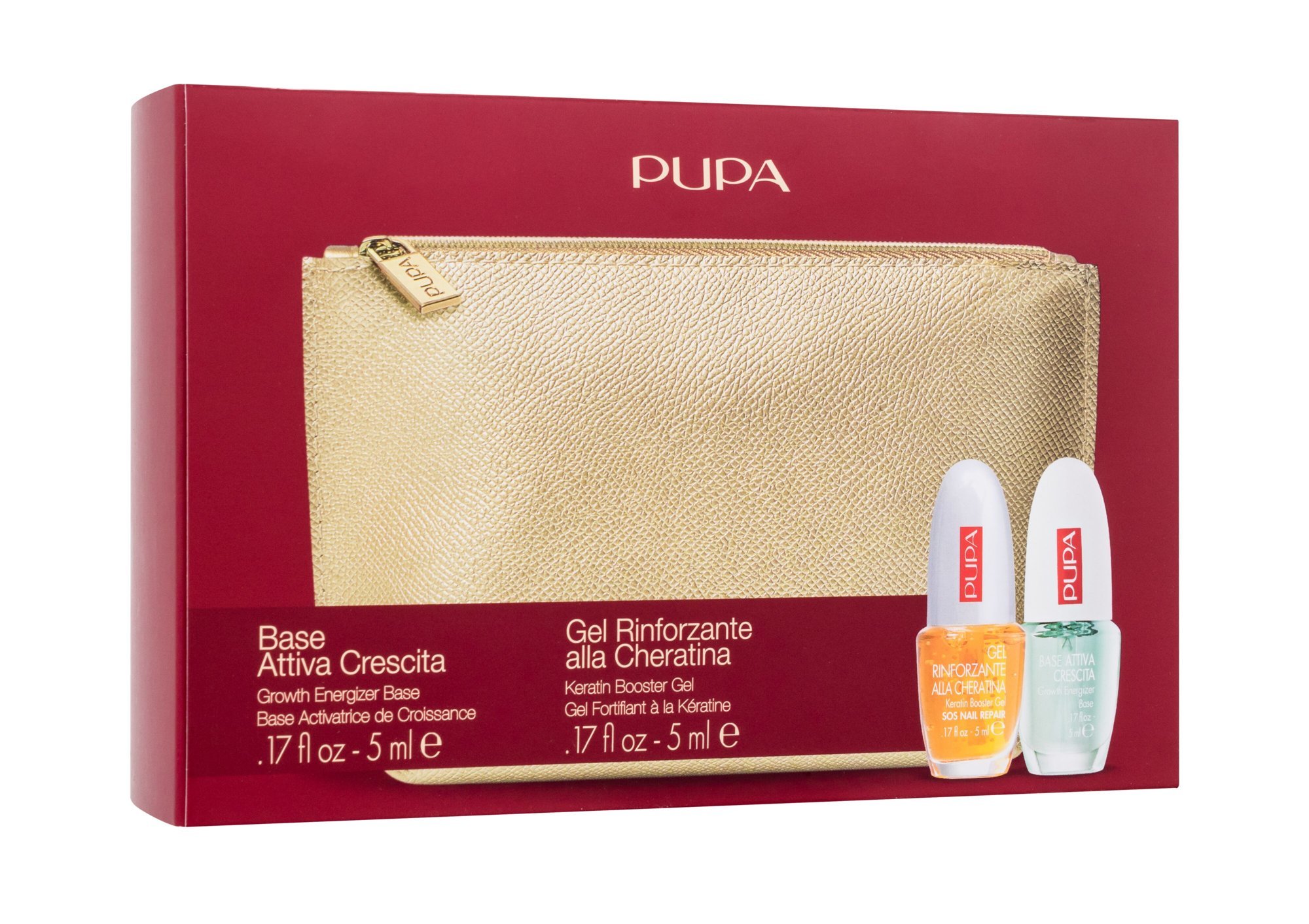 Pupa SOS Nail Repair lak na nehty SOS Nail Repair Keratin Booster Gel 5 ml + podkladová báze na nehty Growth Energizer Base 5 ml + kosmetická taštička