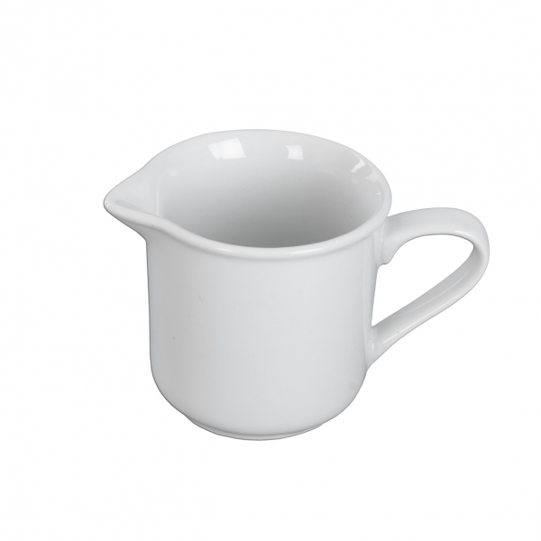 Mlékovka s výlevkou a uchem. Materiál: porcelán. Barva bílá. Rozměry: objem 0,1 l, pr. 6 cm, v. 6 cm. prečítať celé