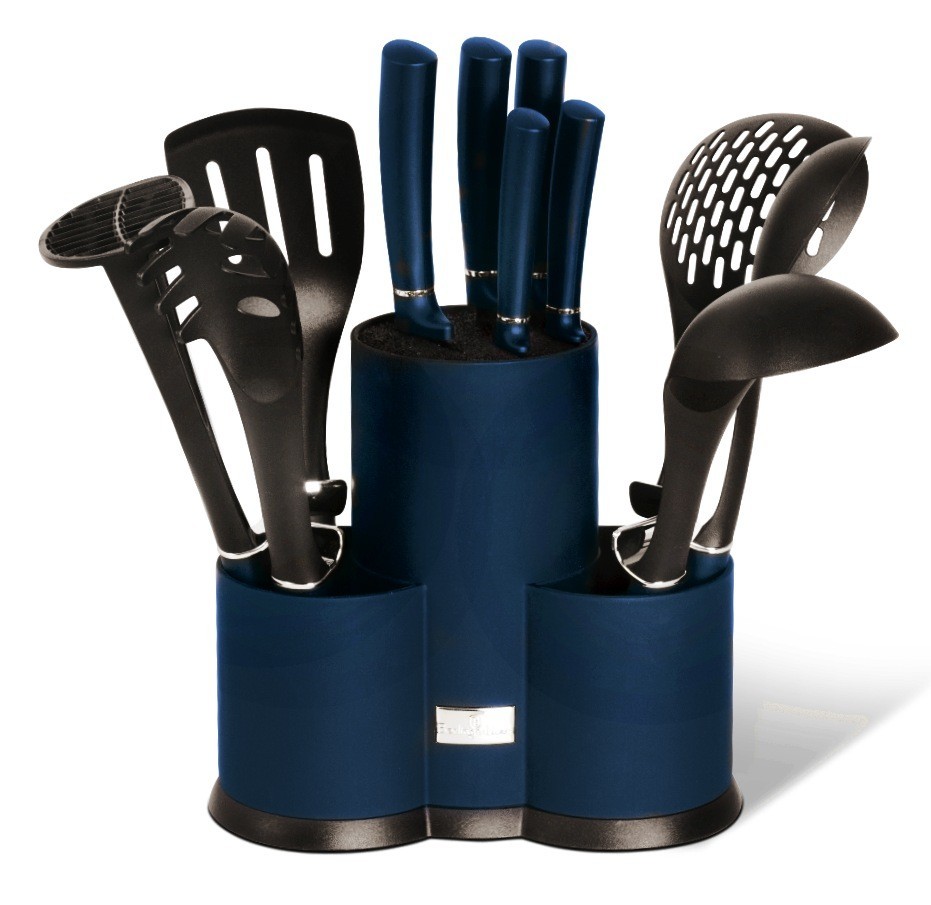 - dokonale praktická sada celkem 12ti kusů kuchyňského vybavení a nožů ve stojanu