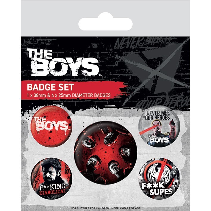 Sada obsahuje 5 placek s grafikou seriálu The Boys. Pěkný doplněk oblečení nebo ozdoba vašeho batohu! prečítať celé