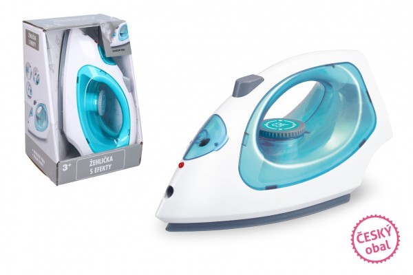 Žehlička vypúšťajúca paru plast 22cm na batérie so zvukom a so svetlom v krabici 16x23x14cm