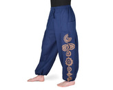 Kalhoty Joga WASTE, modré, bílé ornamenty