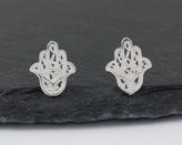 Stříbrné náušnice puzety - Hamsa mini
