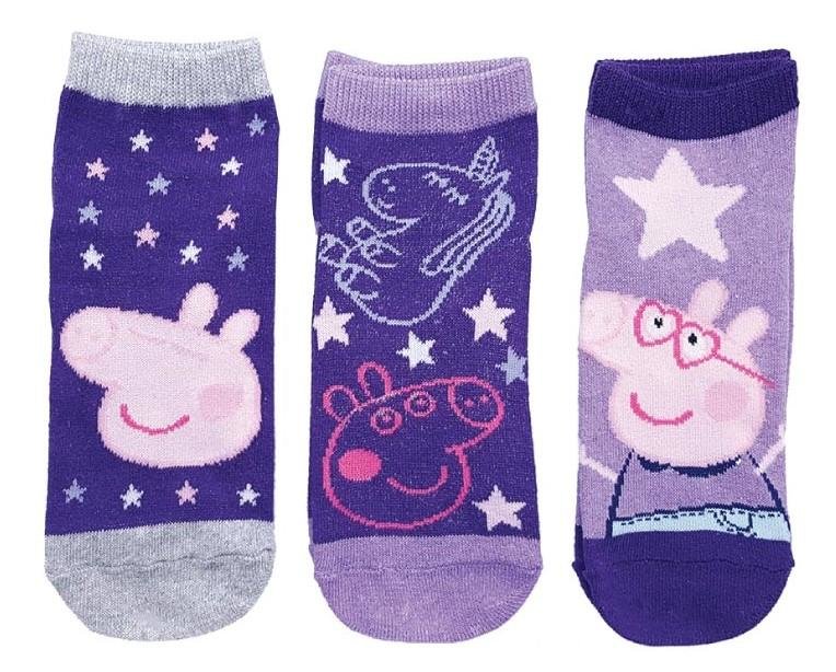 Kotníčkové ponožky s motivem Peppa Pig.Materiál: 65% polyester, 33% bavlna, 2% elastan.Oficiální licence. prečítať celé