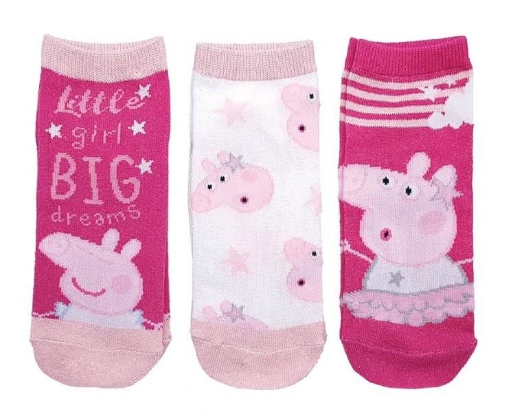 Kotníčkové ponožky s motivem Peppa Pig.Materiál: 65% polyester, 33% bavlna, 2% elastan.Oficiální licence. prečítať celé