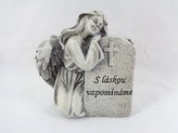 Smuteční dekorace - anděl s náhrobkem, 9,5x9x6 cm, text S láskou vzpomínáme