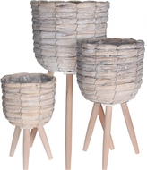 Sada 3 ks pletených květináčů na nožičkách Cattail leaf