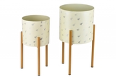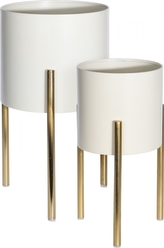 Stojan na květiny krémovo-zlatý s patinou, sada 2 ks