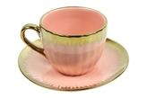 Hrnek s podšálkem Charlotte 11 cm růžový/zlatý