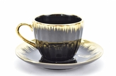 Hrnek s podšálkem Charlotte 11 cm černý/zlatý