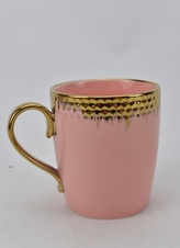 Hrnek s podšálkem Charlotte 11 cm růžový/zlatý II. jakost