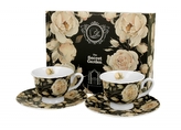 Porcelánový hrnek s podšálkem English Roses Black 100 ml, 2 ks v krabičce