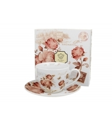 Porcelánový hrnek Vintage Flower White s podtalířkem 250 ml v dárkovém boxu