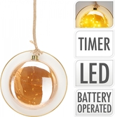 Skleněná LED koule na jutovém provazu 20x80 cm jantarová