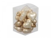 Skleněné baňky - srdíčka 4 cm, champagne, sada 12 ks