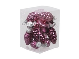 Skleněné baňky - šišky 6 cm, vřesové, sada 12 ks