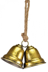 Dvojitý kovový zvonek zlatý na jutovém provaze 9x16x25 cm
