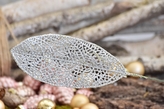 Umělý list s glitry 14x6 cm, stříbrný, s/36 ks
