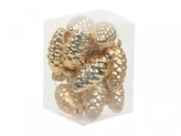 Skleněné baňky - šišky 6 cm, světle zlaté, sada 12 ks