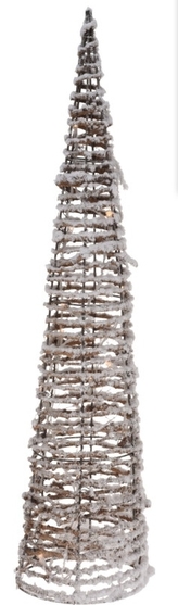 Svítící ratanový kužel 60 cm, 15 LED, zasněžený