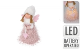 Svítící anděl na pružině 24 cm, dlouhá růžová čepice