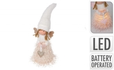 Svítící anděl na pružině 24 cm, dlouhá bílá čepice