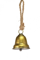 Kovový zvonek zlatý s patinou na jutovém provaze 16x15 cm