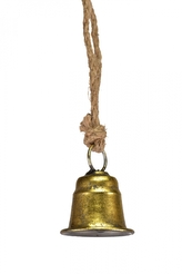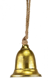 Kovový zvonek zlatý na jutovém provaze 7x5,8x25 cm