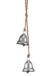 Dva stříbrné kovové zvonky na jutovém provaze 9x7,7x50 cm