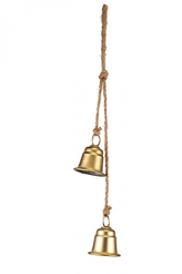 Dva staro-zlaté kovové zvonky na jutovém provaze 7x5,8x50 cm