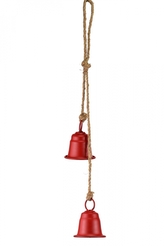 Dva červené kovové zvonky na jutovém provaze 7x5,8x50 cm