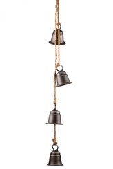 Čtyři šedé kovové zvonky na jutovém provaze 7x5,8x75 cm