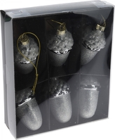 Skleněné baňky - žaludy stříbrné 6,5x4 cm, sada 6 ks