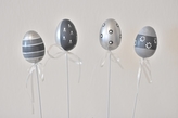 Plastové vajíčka na špajli, bielo zlaté s/12, 4 cm