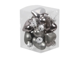 Skleněné baňky - šišky, stříbrné 6 cm, sada 12 ks