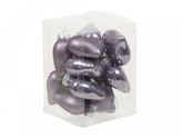 Skleněné baňky - srdíčka 4 cm, ojíněný šeřík, sada 12 ks