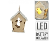 Dřevěný domek s LED osvětlením 9,5x8,5x7,5 cm