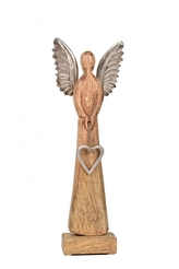 Dřevěný anděl Mango srdce s kovovými křídly 34x12x6 cm