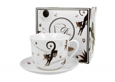 Porcelánový hrnek s podtalířkem Jumbo Charming cats 470 ml v krabičce