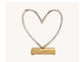 Kovové srdce na dřevěném podstavci 21x19x5 cm