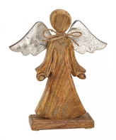 Dřevěný anděl Mango s kovovými křídly 25x21x6 cm