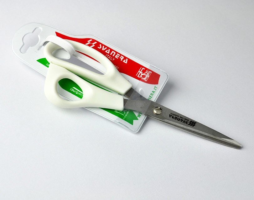 kvalitní nerezové nůžky s plastovými rukojeťmi, délka celkem 19 cm, atestované pro styk s potravinami, vhodné do myčky nádobí italský výrobce EAN 8005498087290 prečítať celé
