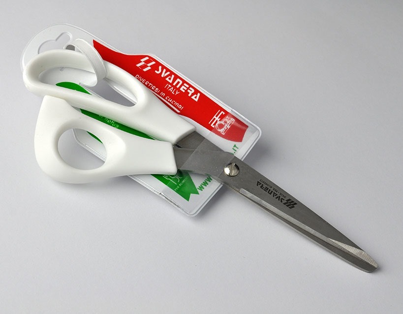 kvalitní nerezové nůžky s plastovými rukojeťmi, délka celkem 22 cm, atestované pro styk s potravinami, vhodné do myčky nádobí italský výrobce EAN 8005498087276 prečítať celé