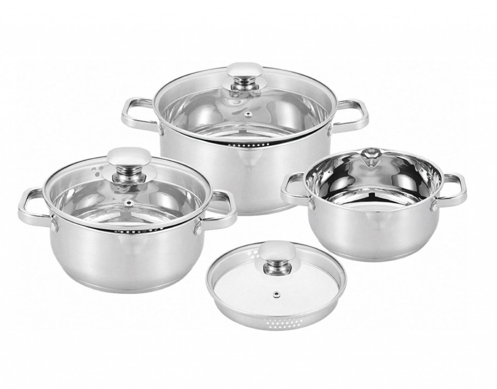 materiál: nerezová ocelkvalitní sendvičové dno pro rychlé a úsporné vařenínerezové rukojeti se nezahřívají, zůstávají vždy chladnéžáruvzdorné poklice s nerezovou rukojetíintegrované cedící otvory v poklicích a výlevka na každém hrncivhodné na všechny druhy sporáků včetně indukcevhodné do myčky...