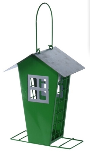 Kovové krmítko na lojové koule. Lojová koule v plastové síťce je pro ptáky nebezpečná, ptáci se do sítěk zachytávají drápky, nedokáží se ovobodit a hynou vyčerpáním a stresem. Naše krmítka jsou pro ptáčky bezpečná.Materiál: kovRozměr:výška 22 cmšířka 15,7 cmhloubka 11 cmhmotnost 356 g