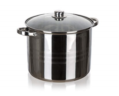 Nerezový hrnec LIVING 13,5 l, skleněná poklice, nerezový knob i držadla, lesklý povrch uvnitř i vně, vnější strana má tři matné pruhy. Hrnec lze použít na všechny typy varných desek včetně indukce. prečítať celé