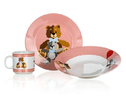 Dětská 3dílná sada MEDVIDCI Red je složena z hlubokého a mělkého talíře o průměru 20 cm, hrnečku o objemu 210 ml. Sada je vyrobena z keramiky s dekorem medvídci. prečítať celé