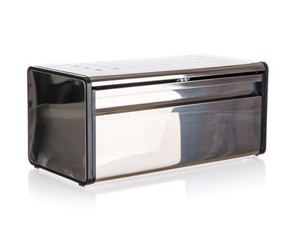 Nerezový chlebník QUADRA o rozměru 39,5 x 20,5 x 18 cm s černým lemem slouží k uchovávání všech druhů pečiva. Povrchová úprava: lesk, typ nerezové oceli: 430, síla nerezu 0,3 mm. prečítať celé